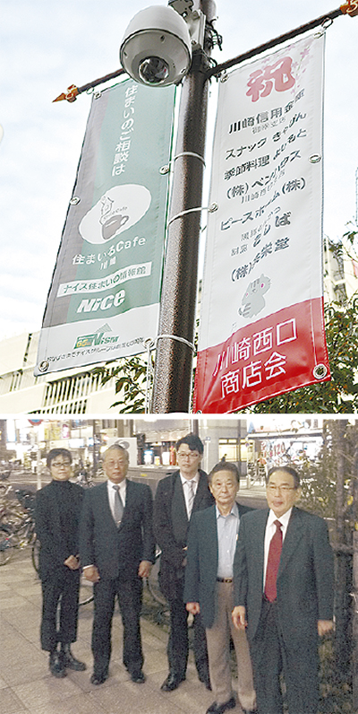 川崎西口商店会(金澤松夫会長)はこのほど、商店会前の大通りに防犯カメラと街灯を設置した。