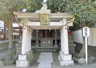 不動堂と中書院の間に位置する福徳稲荷堂は、先の大戦で火災から難を逃れた唯一のお堂。現在の場所に移設されたのは終戦後だが、今も五穀豊穣、商売繁昌の守護神として多くの信徒が参拝している。鳥居があるのは神仏習合の名残かもしれない。