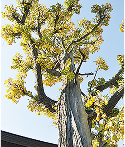 3つ目は経蔵のすぐ近くにある「奇跡の銀杏」。空襲で幹の大半を焼失するも、焼け残った半分の幹から成長を遂げ巨木となった銀杏で、健康長寿を願う象徴として信仰を集めている。