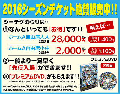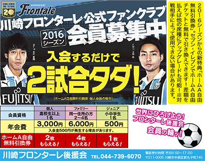 リーズナブルな料金の上、後援会会員限定のシーズンチケット(ホームゲーム20試合)も販売中。恒例のDVD特典もあり。フロンターレファンには欠かせないアイテムだ。