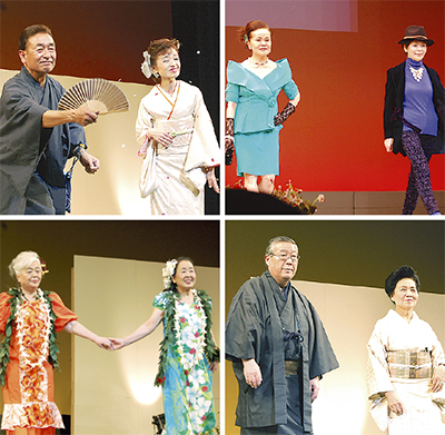 参加者は袴やドレスなど思い思いの衣装を身にまとい、「喜寿の記念に」、「最後の花道をときめきを持って歩きたい」、「いつまでも元気でいたい」などそれぞれの思いを胸にステージ上で輝いた。