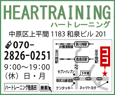 鹿島田駅から徒歩9分、南武沿線通り沿いに加圧トレーニングルーム「ハートレーニング」が今月、新たにオープンした。