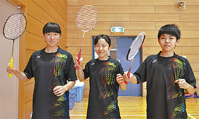 鎌田さんは「県予選では苦しい試合が多かったが勝てて良かった。1回でも多く勝てるようにしたい」と話した。ダブルスとシングルスで出場する宮本さんは「県代表として、まずは1回戦突破を目標に頑張りたい」と語った。安部さんは「持ち味のミスのないラリーを活かして2回は勝ちたい」と意気込みを見せた。