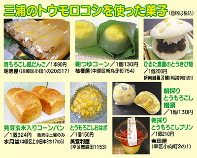 山中さんは「当初はトウモロコシをどのように使えばいいのか戸惑う声もあったが、各店で工夫を凝らした菓子ができた。それぞれ違う味を楽しんで」と話す。