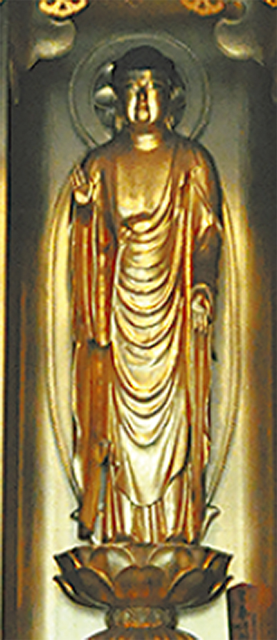 「先代の住職がせめてご本尊様だけは守ろうと、毛布にくるみ、境内にあった井戸に沈めた。そのおかげで、焼失しなかった」と坂本住職。だが、阿弥陀如来立像の内部に納められていた、ご本尊の由来を記した巻物が水によって固着してしまい、造られた詳細な年代などを特定できずにいる。専門家の調べでは室町時代に造られたとされている。