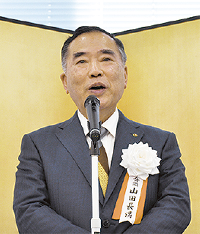 山田長満会頭は「川崎は横浜と東京の間の中心地。両都市とも商売のターゲット」と述べた。また、経済のエンジンは我々産業人であると強調。「川崎市のGDPを6兆円にする」と意気込み、成長戦略として中小企業の後継者確保や事業承継などに力を注ぐ決意を示した。(1月5日 川崎フロンティアビル)