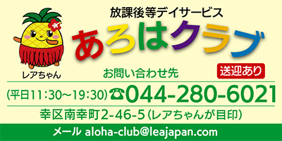 川崎駅近くに昨年開所した放課後等デイサービス「あろはクラブ」では、障害のある小・中・高校生に学習支援を中心とした自立支援を行っている。現在、新たな施設で楽しく学びたい生徒を募集している。