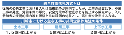 現在、川崎市発注の大型工事には、総合評価落札方式が採用されています。