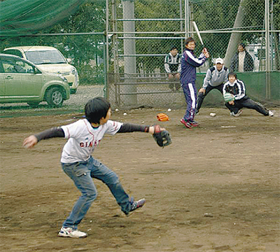 当日は40人の子どもたちが参加。篠塚さんや巨人軍現役の古城茂幸選手、寺内祟幸選手らとキャッチボールや打撃練習などを行い、汗を流した。その他、同短大の女子バスケ部との練習試合や、女子プロゴルファー・天沼知恵子選手によるゴルフレッスンなども行われた。