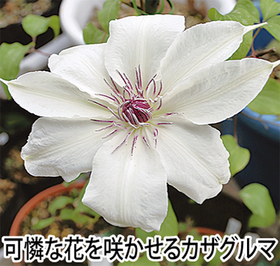 5月になると230種8000株のクレマチスが見頃を迎える相模原麻溝公園(南区麻溝台)では一昨年から、絶滅危惧IB類(神奈川県レッドデータブック2006)指定のクレマチスの原種「カザグルマ」の保護・増殖活動に取り組んでいる。同公園を管理する(財)相模原市みどりの協会と相模原クレマチスの会、市立博物館が連携して実施。3年目に入り、徐々に成果が見えてきた。