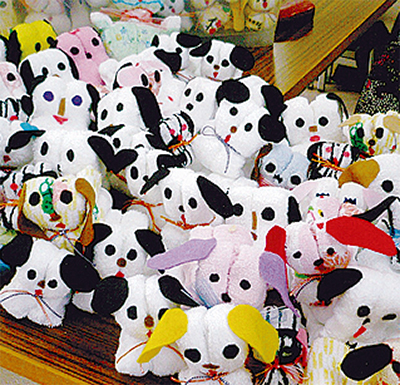 上矢部団地の集会所を会場に、創作活動などを行っている「なごみ会」ではこのほど、1本の手ぬぐいで犬をかたどった小物を制作し、被災地へ送ることを決めた。