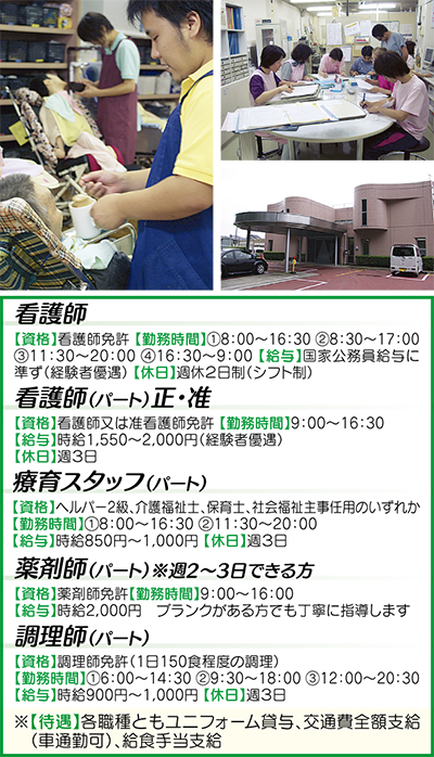 ベッド数は60床、同施設は治療の場でもあり、生活の場でもある。病院と福祉施設の2つの機能を持ち、医師、看護師、療育スタッフ、理学療法士などの専門職がチームを組んで協力しながら、入所事業のほか、在宅の重い障がいを持つ方に通所事業も行う。現在事業強化のため職員を募集中。