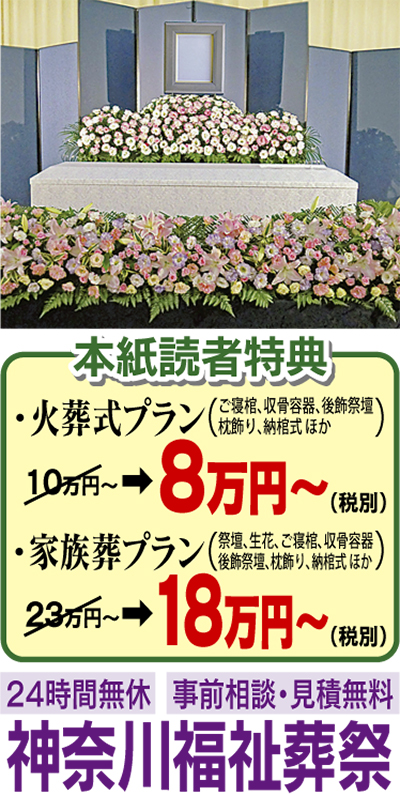 それぞれに合った本当に納得のいく葬儀を提供する神奈川福祉葬祭。「悲しみにくれる家族の手助けをしたい」と事前相談、見積りは完全無料。24時間無休なので、緊急のときも対応してくれる。さらに費用も良心価格。「ご予算にお困りの方、生活保護世帯、市民葬、区民葬等、お気軽にご相談ください」と同社では話している。本紙を見て申し込むと火葬式を8万円〜、家族葬を18万円から案内してくれる(左枠参照)。詳細はホームページ、またはお電話でお気軽に。