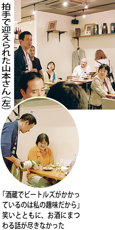 当日は、雑誌などで注目されている銘酒「白瀑」の蔵元で杜氏を務める山本友文さんが来店した。山本さんは秋田県の白神山地の湧き水を使用するなど、こだわってお酒を醸造している。その水を使い、原料となるお米も自身で作っており、「栽培醸造家」を肩書きとしている。