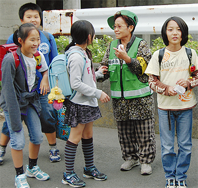 同隊は、平成18年に発足。市立小山小学校の児童の登下校時の安全を守るため、通学路に朝と夕方立ち、子どもたちに声をかけている。現在では60〜70代を中心に、合計43人で活動中。ほかにも見守り隊を行っている自治体はあるものの、同隊では当番制ではなく一人ひとりが自主的に参加しており、義務感ではなく積極的に取り組む姿勢が評価された。昨年も県知事・県警本部長連名で感謝状を贈られている。結成から5年経過した現在では、中学生ともすっかり顔なじみになっているそう。