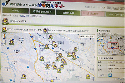 寄せられた情報は今年3月に作られた、市の子育て応援HP「はなたんネット=写真」(http://hanatan-net.city.sagamihara.kanagawa.jp)にアップされる。”子育て応援店”とは「粉ミルクのお湯や授乳スペース、おむつ替えスペースがある」「子ども連れに割引がある」などのサービスを受けられる店舗・事業所のこと。