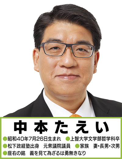 強く誇りある日本を、そして、少しでも多くの家庭が一家団欒の食卓を囲めるように、中本たえいは真摯に政治に向き合います!