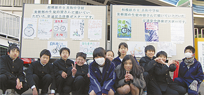 駐輪場を管理・運営する公益財団法人相模原市都市整備公社(富士見)が、地域連携と自転車利用者へのマナー向上のための啓発運動として実施した。生徒が手がけたポスターには「交通ルールを守ろう」「自転車を停車するときはカギを掛けよう」「左側通行で走る、二人乗りはしない、片手運転をしない、マナーを守って」などといったメッセージとイラストが描かれており、駐輪場を利用する人の目にとまりやすい場所に設置されている。