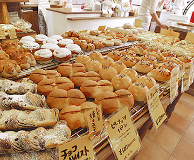 お店に入ると目の前にはパンがズラリ。焼きたての良い香りが食欲を掻き立てる。横には季節のフルーツたっぷりのタルトやケーキが勢揃い。雑貨コーナーを抜けると、迫力のピザ窯と150席のレストランが広がる。