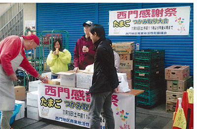 西門地区商業地活性化協議会(浦上裕史会長)は16日、「西門感謝祭 たまごつかみ取り大会」を開催した。この大会は、指定の店で買い物をすると参加できる毎年恒例の人気企画。