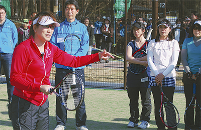 淵野辺公園内のテニスコートで23日に行われた相模原市テニス協会(高橋宏彰会長)設立40周年記念行事に、特別ゲストとして元プロテニスプレーヤーの杉山愛さんが参加した。杉山さんがこのようなイベントで相模原市に来るのは初めて。世界を知る元プロ選手のプレーを一目見ようと、会場は多くの観衆であふれかえった。