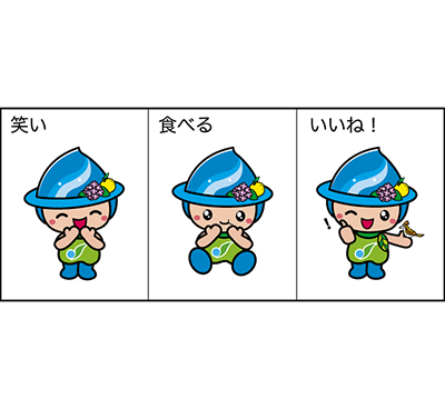用途範囲は多岐にわたり、商品パッケージ、店舗のディスプレイ、印刷物、資料などにマークとして使用OK。地元企業のラッピングカーなど、申請は続々と増えている。笑い、食べる、いいね!など用途に合わせ選択が可能。好みのポーズで仕上げては。