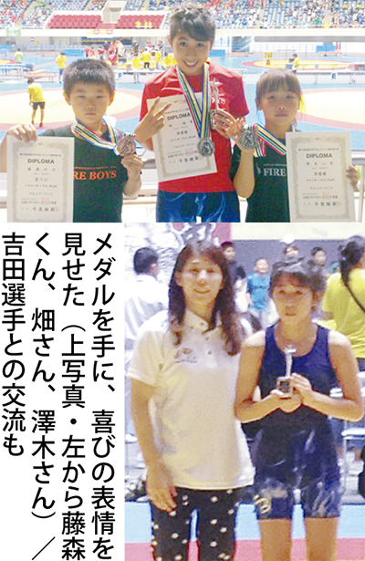 畑さんは、同大会でプレゼンターを務めていたロンドン五輪金メダリストの吉田沙保里選手からメダルを授与された。参加資格が小学生までの今大会を最後に、レスリングを続けるか迷いがあったものの、吉田選手との交流で継続を誓ったという。山内代表は、「初挑戦の二人は練習を始めて日も浅いが、よくやったと思う。畑選手も、高学年でファイナリストになるのは難しい現状で、日頃の成果を発揮してくれた」と選手らの健闘をたたえた。