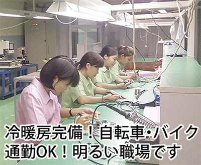 工場内で電子部品の受け入れ、ハンダ付、目視検査などを行う仕事で、20〜30代の男女が活躍している。「機械の流れを見て行うライン作業ではありません。全て手作業で行うので、ご自分のペースでコツコツやりたい方と一緒に働けたら嬉しい」と武田さんは話す。