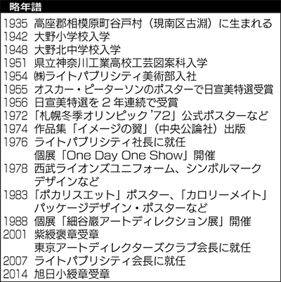 南区古淵出身で日本を代表するアートディレクター、細谷巖さん(79)=人物風土記で紹介=のこれまでの仕事の一部=画像=を紹介する。細谷さんは現在、(株)ライトパブリシティ(東京都中央区銀座)の代表取締役会長を務めながら、広告制作に携わっている。