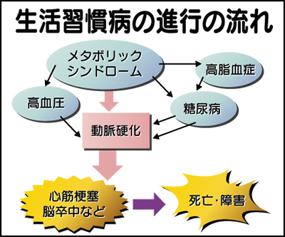 生活習慣病を引き起こす原因は高血圧、高血糖、高コレステロールとされる。この3つの要素は普段自覚症状が出にくいために気づかず、放置しがちになるという。放っておくと、動脈硬化を悪化させ、心筋梗塞など血管系の病気、脳卒中、脳梗塞になる危険性があり、早い段階で生活改善など管理が必要。それぞれの程度や病状によっては、投薬治療のタイミングを検討することになる。特に、動悸や息切れ、脈の乱れ、胸の痛みなどの症状がある場合は早めの受診が望ましい。こうした際に同院では、食事習慣、運動を基本にアドバイス。症状をチェックしながら投薬についての相談にも乗るほか、希望があればメタボ検診の受診も可能だ。