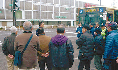 こうした中、同署では人身事故や死亡事故が起きた現場を見学し、事故防止の啓発に繋げようと今回のツアーを発案。小山地区居住の高齢者25人を乗せ、二交機分駐所前交差点(東淵野辺五丁目)や相生交番前交差点(相生三丁目)など、実際の事故現場を見て回った。参加者は、当該事故の原因や事故を防ぐための助言などの話に熱心に聞き入った様子だった。