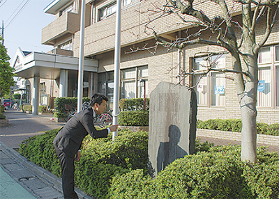 同館は、大沢公民館(緑区)とともに相模原で最初の公民館。施設前の石碑は、明治20年代前半に戸長(村長)を務めた清水呉平氏の功績を讃えるものだ。