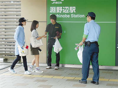 同駅は大学施設を多く有し、学生の出入りも頻繁であることから、JR横浜線の駅の中でも痴漢の発生率が高いという。こうした背景から、同署が近隣の桜美林大学へ啓発運動の協力を要請。「地域に貢献できるなら」と、同大学も快諾し実施に至った。