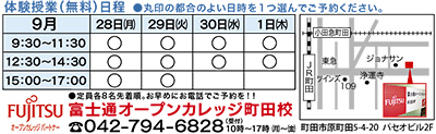 町田駅からすぐ「富士通オープンカレッジ町田校」では開校以来、春と秋の年2回無料体験授業を実施している。今年は9月28日(月)からいよいよ開催する。