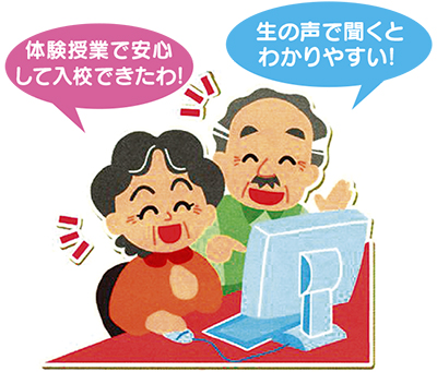 同校では『繰り返し、ゆっくり、丁寧に、楽しく学べること』をモットーに、富士通認定講師が「生の声」で親切に教えてくれる。また、今話題の「脳のフィットネス」にも積極的に取り組んでいるのでおススメ。