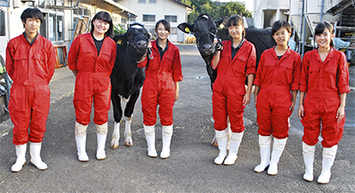 ホル全共には全国から約400頭の乳牛が集まり、出品区分を18部に分けられ、審査・選賞される。同部の選抜メンバー6人(写真左から宮村悠希さん・1年、金子純子さん・3年、松本七海さん・2年、津留崎彩奈さん・3年、早瀬みなみさん・3年、小澤彩夏さん・1年)は21日に北海道へ出発する。共進会で、牛を歩行させるリードマンを務める津留崎さんは「部員や先生はもちろん、地域の酪農家の方々にもたくさん協力してもらったおかげでの予選通過。感謝の気持ちでいっぱい」とし、「当日は自分が緊張してしまうと牛にも伝わってしまう。平常心を心掛けたい」と意気込んだ。金子さんは「4月の大会で指摘された点を改善するために朝早くから体を洗ったり、歩行練習をしたりしてきた。今まで通りの調子で頑張りたい」と話した。