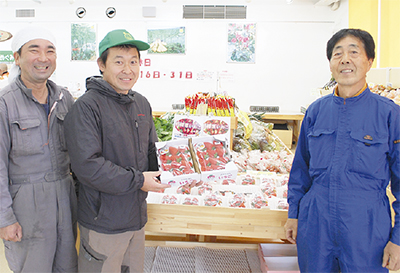 市内でいちごの栽培を行っている中里昭司さん(緑区大島)、小林重治さん(東淵野辺)、成井正志さん(田名)が昨年結成した「いちご倶楽部」。採算の上で手が出しづらいこの果物づくりに協力して取り組み、相模原の新たな名産品にしようと本格的に動き出す中、このほど同倶楽部として初めて出荷・販売を開始した。