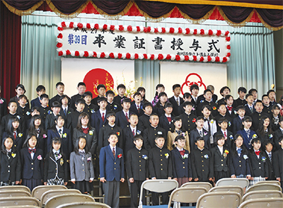 同校の西山俊彦校長は「本番の歌声は、歌詞に子どもたちの思いが重なり本当に素晴らしいものでした」と式を振り返った。