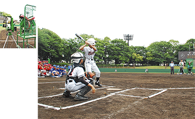 プロ野球・読売巨人軍の菅野智之選手の寄付で導入されたピッチングマシン2台が5月28日、ひばり球場で行われた少年野球大会で披露された。