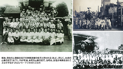 江戸時代から200年以上にわたって、地域住民によって受け継がれ、育てられてきた「上溝夏祭り」。祭神は、京都府の八坂神社より厄病などの災厄からのがれるために祭る行疫神「牛頭天王」を勧請した(分身・分霊を移して祭った)と伝えられ、古くは「天王祭り」として、毎年必ず7月27日と28日に行われていた。地元の人たちはこの祭りを「てんのうさま」と呼び、牛頭天王の御霊を宿した神輿を渡御することで、厄病神退散、五穀豊穣、家内安全を祈願した。