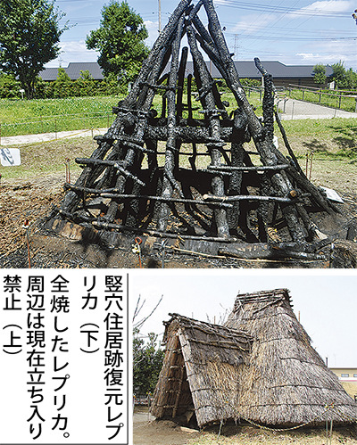 レプリカは同公園の隣接地で発見された約5000年前の縄文時代中期の竪穴住居跡を展示物として復元。柱材はクリ、屋根はカヤを用い、2009年より公開されていた。