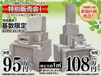 「先に土地だけ購入したい」という方には、墓地購入権だけの購入プランも用意。外柵や墓石の設置期間制限がないので安心だ。