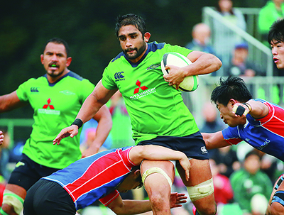 立ち上がりの前半2分、幸先良くロコツイ・シュウペリ選手のトライで先制すると、6分にも追加点。その後、東京ガスの反撃にあうも40対14で試合を折り返す。迎えた後半も大勢は変わらず、さらに5トライを加えた三菱重工が大勝を飾り、開幕からの連勝を6に伸ばした。
