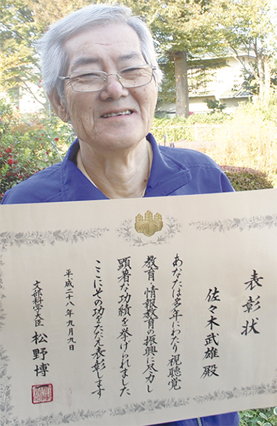 公共施設や地域の事業所を訪れ、映画やアニメーション放映をボランティアで行っている相模原市16ミリ映画研友会会長の佐々木武雄さん(南区麻溝台在住)がこのほど、文部科学大臣表彰を受けた。