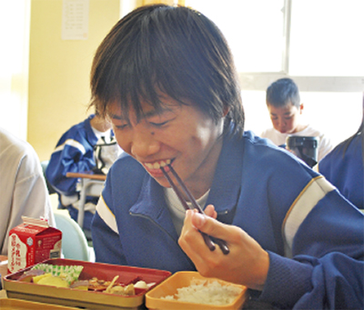 市への愛着を持ってもらおうと、毎年実施されている同事業。デリバリー方式の給食を採用している由野台中学校では、地元産の米や小松菜などを使用した給食が振る舞われた。同中の濱田壮史さん(2年)は「家庭科でも勉強した高座豚の生姜炒めが特に美味しかった」と笑顔で話した。