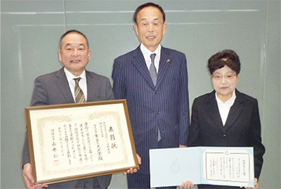 南区上鶴間本町に本店を構える(株)家具の大正堂(渋谷金隆社長)が行ってきた本店裏山の整備活動がこのほど、平成28年度の環境大臣賞を受賞した。活動をともにしてきた「境川の道正山河畔林を守る会」(小野きく代表=以下守る会)も継続的な緑化貢献等が認められ、「(公財)ソロプチミスト日本財団」から社会ボランティア賞を受賞し、道正山を整備する同社、同団体がダブルでの受賞となった。
