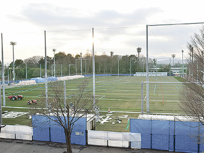 横山公園内で整備が進む「多目的フィールド」上にこのほど、人工芝が敷き詰められ、今年4月の供用開始に向けてその全体像が明らかになりつつある。