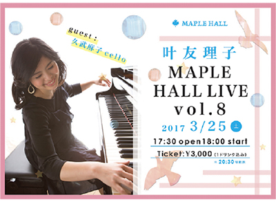 市内中心に活躍するシンガーソングライター叶友理子さんのコンサートが3月25日(土)、メイプルホールで行われる。午後5時30分開場、6時開始。1ドリンク込みで一人3千円。