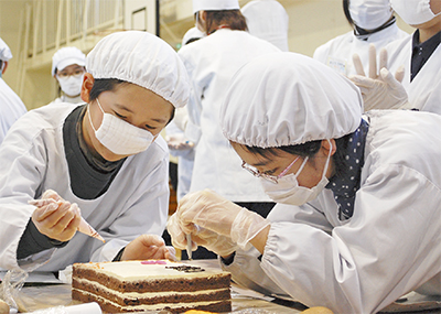 当日は、6年生が同店のスタッフからアドバイスを受けながら、事前の授業で描いたケーキのデザイン図をもとに、グループにわかれてケーキのデコレーションに挑戦。最後には、それぞれ完成させたケーキを合わせて1つの「夢ケーキ」を完成させた。事前の授業で職業講話も行った清水さんは「今回の授業を通して何か一つでも心に留まることがあれば」と話した。