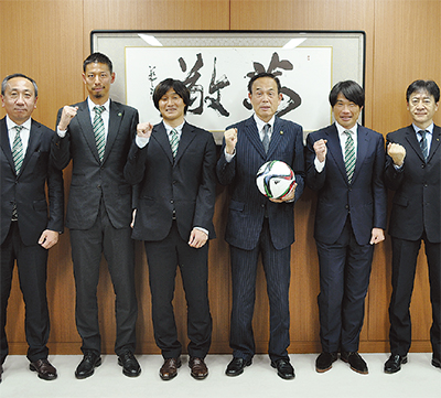 地元サッカークラブ・SC相模原の望月重良代表らは2月23日、市役所を訪れ加山俊夫市長らに今季の意気込みを語った。